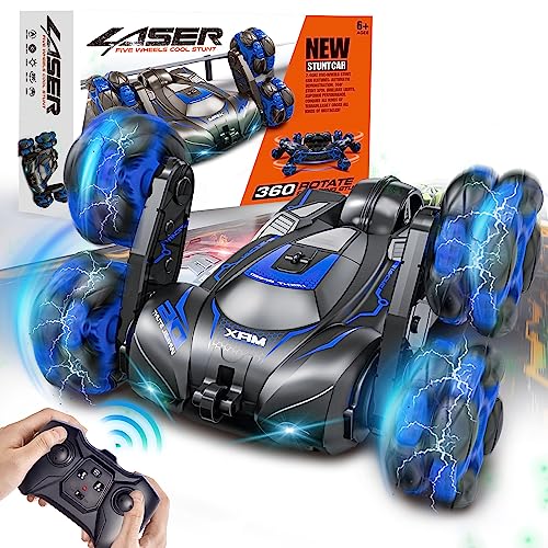 Rodzon Ferngesteuertes Auto 3 4 5 6 7 8 9+ Jahre Spiele LED Blinken RC Auto Spielzeug Jungen Mädchen Geschenke Kinder Toy 2.4Ghz 4WD 360° Flip Crawler RC Car mit 2 Aufladbarer Batterien (Blau)