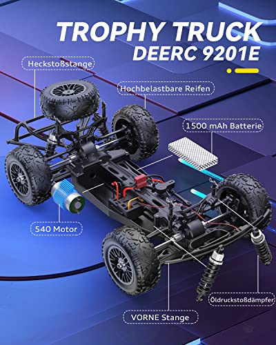 DEERC-Ferngesteuerte-Auto-110-mit-Lichtern-RC-Auto-48kmh-4WD-Offroad-Hobby-Grade-Monster-Crawler-mit-2-Akkus-40-Minuten-Laufzeit2-Autoschalen-fuer-Erwachsene-Kinder-9201E