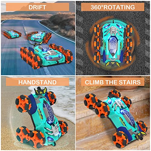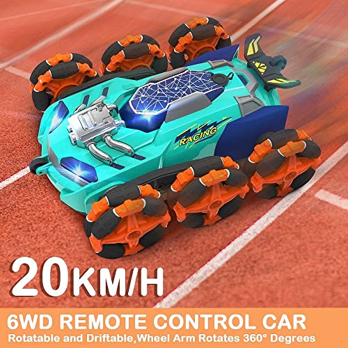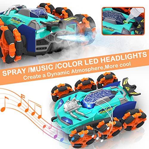 【6WD RC Car mit Spray/Musik】 Professionelles Driftrad ermöglicht es Ihnen, coole Bewegung, 360°-Drehung und Driftfunktionen zu bedienen, während Sie das Rad steuern, um den Körper zu drehen oder nach oben zu schauen. Das ferngesteuerte Auto verfügt außerdem über 8 Funktionen wie Musik, Spray und LED-Lichter.