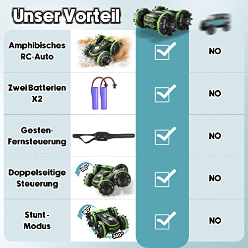 PERFEKTES GESCHENK FÜR IHRE KINDER: Dieses 4WD RC-Stuntauto kann verschiedene Tricks ausführen und gleichzeitig die Kreativität Ihres Kindes steigern. Ideal für Geburtstagsgeschenke und Weihnachtsgeschenke. BITTE BEACHTEN SIE: Der Akku kann sich aufgrund der langen Versandzeit ausschalten. Bitte laden Sie den Akku nach Erhalt auf. Wenn Sie Fragen haben, wenden Sie sich bitte direkt an uns, um es für bessere Ergebnisse richtig zu verwenden.