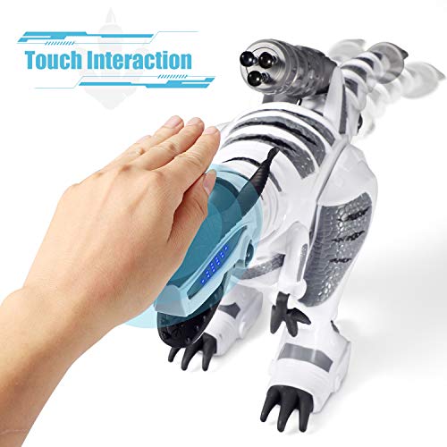 Intelligente Berührungserkennung: Berühren Sie den induktiven Bereich auf dem Kopf des Dinosauriers, als Reaktion schwingt er seine Kopf und Schwanz. Mehrere Reaktionsmöglichkeiten sorgen für mehr Spaß beim Spielen.