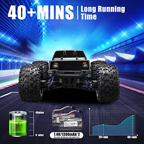 ????2 Wiederaufladbare Batterien & 40 Minuten Laufzeit: Dieses ferngesteuerte Auto wird mit zwei wiederaufladbaren Batterien mit 7,4 V/1300 mAh geliefert. Es bietet Fahr- und Rennspaß für ca. 40 Minuten nach vollständiger Aufladung. Ein passendes Ladekabel ist im Lieferumfang enthalten, um Ihnen zu helfen, die Akkulaufzeit zu verlängern. Es ist die beste Wahl, um Ihrem Kind den Nervenkitzel und die Aufregung beim Fahren eines Offroad-RC-Autos zu vermitteln