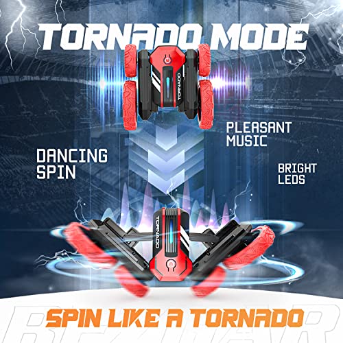 ????CRAZY TORNADO STUNT AUTO – Features auf 360-Grad-Drehung auf doppelseitigen Rennen zu driften und Flip die Fernbedienung Auto. Spinning mit cooler Musik und Lichteffekt, diese RC-Autos für Kinder werden mehr einzigartig in der Nacht.