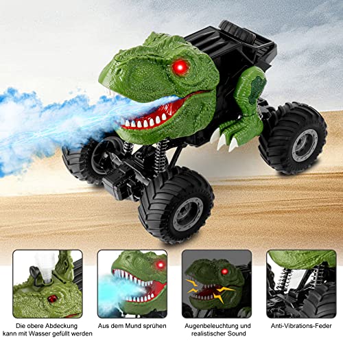 ???? All Terrains Ferngesteuerter Dinosaurier Truck – Das ferngesteuerte auto spielzeug besteht aus robustem ABS-Kunststoff und hochwertigem metall, Dinosaurier-Spielzeugauto mit stoßdämpfender Feder an der Unterseite,so Dieses ferngesteuerte Auto ist für die meisten Gelände wie Rasen, Kies, Schmutz, Felsen geeignet. am Strand, ermöglicht es Kindern, es in den meisten Umgebungen zu spielen.