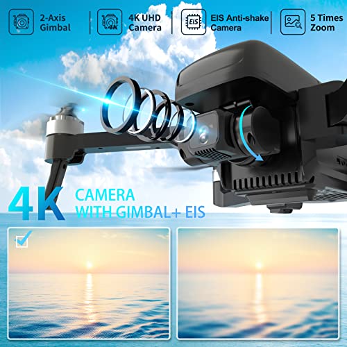 【4K EIS Anti-Shake-Kamer】: Die 4K-Kameradrohne mit 2-Achsen-Gimbal-Stabilisierung und EIS-Technologie bietet Ihnen hochwertige Bilder (4096 x 3072p) und ultraklare, superflüssige Videos (2048 x 1088p, 4K bei 30 fps) ohne Angst vor Unschärfe .Mit der verbesserten 5G-Übertragung können Sie Bilder und Videos ohne Unterbrechung in Echtzeit auf Ihr Telefon übertragen