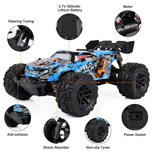 【Geländegängigkeit】Das Rennauto Spielzeug ist mit 3.7V 500 mAh wiederaufladbarem LITHIUM-Akku mit großer Kapazität ausgestattet. Die Ladezeit beträgt ca. 60 Minuten, 16-20 Minuten lang ununterbrochen benutzt werden, während Ihr Kind mit seinen Freunden um die Wette strahlt. Ausgestattet mit 4×4 Allradantrieb und unterstützt durch 4 Einzelradaufhängung, kann die RTR-Fernsteuerung LKW starke Leistung und eine wunderbare Schutz vor Kollisionen. Leistungsstarke Stoßdämpfung sorgt für endlosen Nervenkitzel und Unterhaltung im Gelände und auf der Straße.