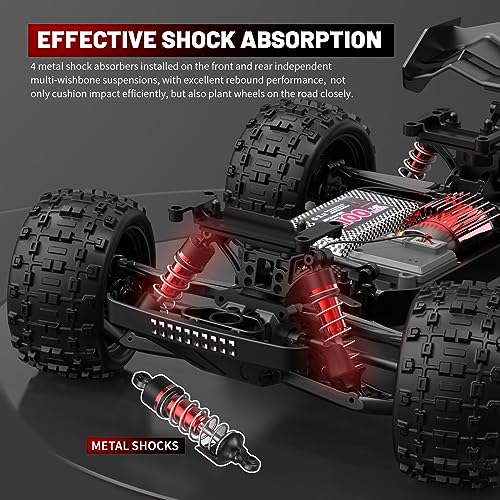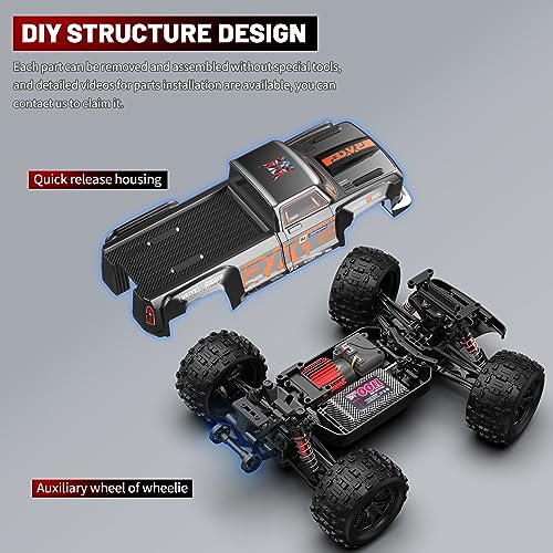 Hochleistungs-RC-Truck: Der starke magnetische 390-Bürstenmotor mit Kühlkörper bietet eine starke Leistung, einen hohen Wirkungsgrad und einen geringeren Leistungsverlust, sodass das Auto schnell auf 40 km/h beschleunigen kann. Die Superbeschleunigungsfähigkeit gibt Ihnen im Rennwettbewerb Selbstvertrauen und kann die Frontpartie des Autos beim Beschleunigen mit voller Geschwindigkeit leicht anheben.