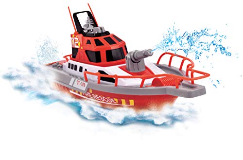 Aufladbar per USB – Das Feuerwehrschiff besitzt einen fest eingebauten und wasserdichten Li-Ion Akku mit 3.2V und 700mAh. Dieser kann jederzeit über das beiliegende USB-Ladekabel wieder aufgeladen werden (ca. 180 Minuten Ladezeit – bis zu 30 Minuten Fahrzeit). Batterien für die Fernsteuerung sind im Lieferumfang enthalten.