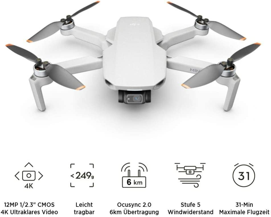 LEISTUNGSSTARKE PERFORMANCE: Mit einer maximalen Akkulaufzeit von 31 Minuten gewährt DJI Mini 2 mehr als genug Zeit, um die ideale Aufnahme einzufangen; Mini 2 kann Windstärken der Stufe fünf widerstehen und bis zu einer maximalen Höhe von 4.000 m aufsteigen; So schenkt sie auch dann noch stabile, wackelfreie Aufnahmen, wenn sie entlang einer windigen Küste oder hoch über alpinen Wäldern fliegt