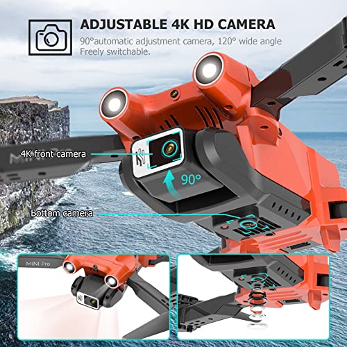 【4K HD FPV Kamera】: Dual Kamera Drohne mit 4K kamera, die Ihre wunderbaren Momente mit unglaublichen Details festhalten kann; Die automatisch um 90 ° einstellbare Struktur erweitert Ihre Sicht, und die FPV-Technologie garantiert eine längere und reibungslose Bildübertragung und unterstützt Gesten zum Aufnehmen von Fotos und Videos.