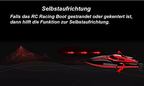 Hilfreiche Funkktionen – Low Voltage Warnsystem bei geringer Akkuleistung, 180 Grad System zum Wiederaufrichten, falls das Boot RC kentert. Schnelles Wiederaufladen des Akkus