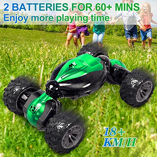 ????【Tolle Stuntfunktion】 Das ferngesteuerte Spielzeugauto im Maßstab 1:18 kann sich in alle Richtungen bewegen, um 360 Grad drehen und in beide Richtungen fahren. Allradantrieb Klettern Stunt-Auto hat Beleuchtung Effekt, und kann links und rechts fahren. Die seitliche Drift-Funktion ist seine einzigartige Fähigkeit, coole Funktion und unendlichen Spaß im Vergleich zu anderen ferngesteuerten Spielzeugautos auf dem Markt, die wunderbare Bedienung Erfahrung und visuelle Effekte für Kinder bringt.