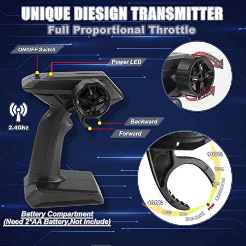 【Fernbedienung】2.4-GHz-Fernbedienung im Pistolenstil, bis zu 40 Meter Steuerentfernung, Frequenzen stören sich nicht, professionelle Fernbedienung ist eher für RC-Anfänger und Kinder geeignet.