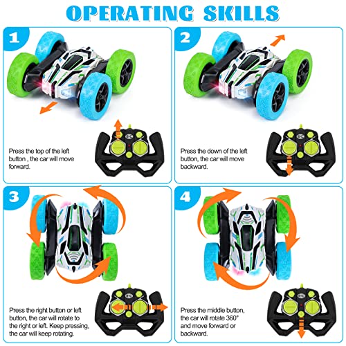 【2 WIEDERAUFLADBARE BATTERIE & 2,4 GHZ】Das RC-Stunt-Auto nimmt eine 2,4-GHnz-Technologie an, die für mehr Autos geeignet ist, die gleichzeitig mit der gegenseitigen Interferenzprävention spielen. Fernbedienung benötigt 2 Batterien, nicht enthalten.