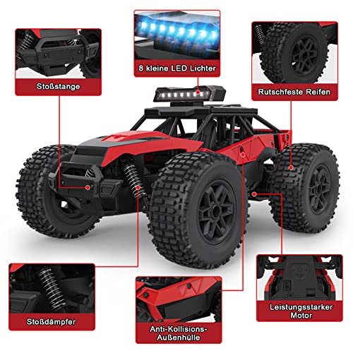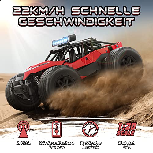 [Lange Akkulaufzeit und Wiederaufladbare Funktion] Das ferngesteuerte Buggy-Auto wird einfach und bequem über ein USB-Kabel mit den mitgelieferten wiederaufladbaren Batterien aufgeladen, und die Fernbedienung benötigt 3 AAA-Batterien (nicht enthalten). Die Autobatterien können über 30 Minuten halten.