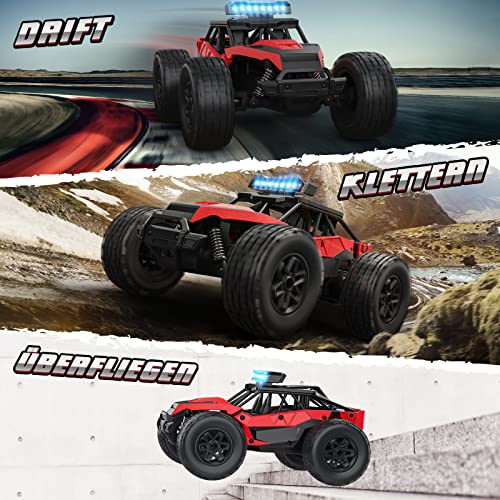 [Schnelle und Flexible Steuerung Radio-RC-Auto] Dieses Rennauto verwendet die 2,4-GHz-Technologie, keine Störung. Die Höchstgeschwindigkeit beträgt etwa 22 km/h und die Steuerreichweite beträgt etwa 40 Meter. Das auto kann leicht driften, vorwärts oder rückwärts fahren, nach links oder rechts abbiegen, sich um 360 Grad drehen und Hindernissen ausweichen. Die flexible Steuerung und die hohe Fahrgeschwindigkeit geben Kindern ein realistisches Rennerlebnis.