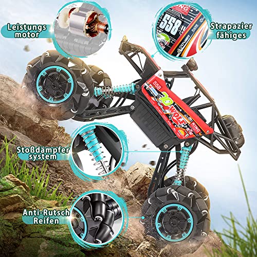 ????【Fernsteuerungstechnologie】Mit der 2,4-GHz-Fernbedienung können Sie die Richtungen und Entfernungen flexibel und bequem steuern und eine schnellere Signalübertragungsrate erzielen, wodurch die Steuerentfernung vergrößert wird. Mit einem innovativen horizontalen Design können Sie mit dem ferngesteuerten Drift-Auto in alle Richtungen driften – Kopf links / rechts, Heck links / rechts, links / rechts vorne 45 Grad, links / rechts hinten 45 Grad und 360 Grad Drehen Sie den Effekt.
