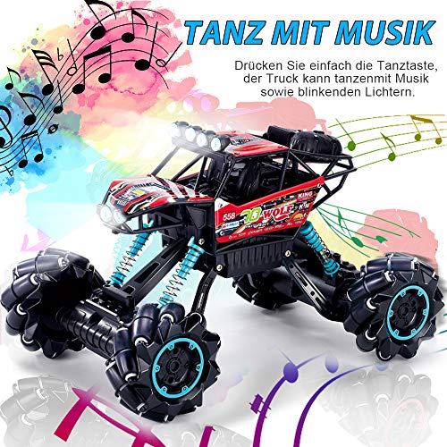 ????【Music Dancing Demo】Unserer ferngesteuerten Autos über eine einzigartige Musik-Jitter-Tanzfunktion mit einem Klick. Wenn Sie die “Tanz” -Taste gedrückt haben, wird Musik abgespielt und gleichzeitig beginnt das Spielzeugauto automatisch mit blinkenden Lichtern zu tanzen. Es gibt insgesamt 4 Stück Tanzmusik. Programmierung: Sie können eine Reihe von Aktionen im Voraus kombinieren, wie Sie möchten, und die Programmierdemonstration drücken, um die von Ihnen festgelegte Aktion abzuschließen.
