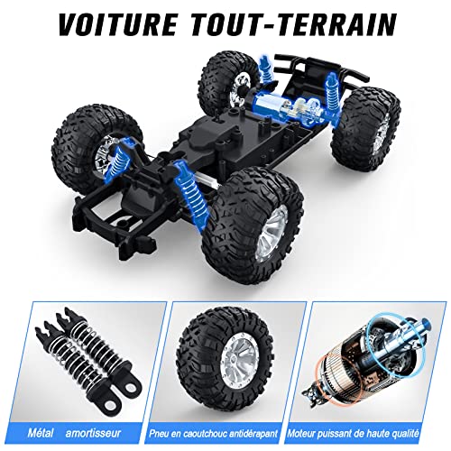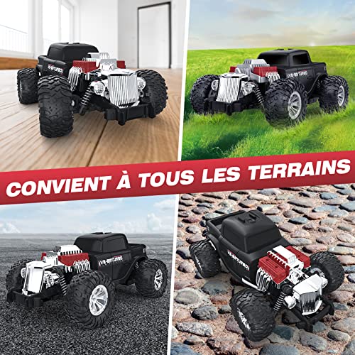【Schnelles Offroad-Auto】 Unser Geländewagen verfügt über ein Retro-Aussehen, mit 4 Monsterreifen, 4 Stoßdämpfern und leistungsstarken Motoren, die es drinnen und draußen reibungslos machen, geeignet für fast jedes Gelände, wie glatter Boden, Zementboden, Bergstraße, Sandstraße, Wiese, felsige Straße, Garten und Steigung, usw.