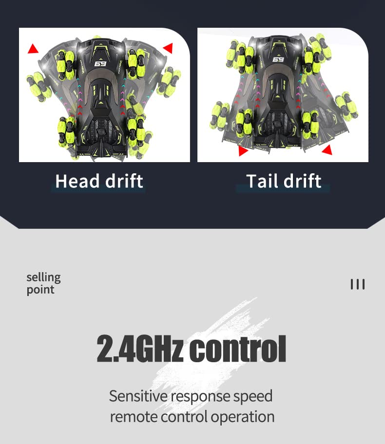 【Cooler Stunt】: Dieses RC-Stunt-Auto mit Allradantrieb ist mit hoher Qualität und mehr Funktionen ausgestattet, die Ihrer Fantasie freien Lauf lassen. Erstaunlich ausgefallen 360 ° drehbar, vorwärts, rückwärts, links abbiegen, rechts abbiegen, sprühen. Fit für Kinder und Erwachsene, bringen Sie ein tolles Erlebnis