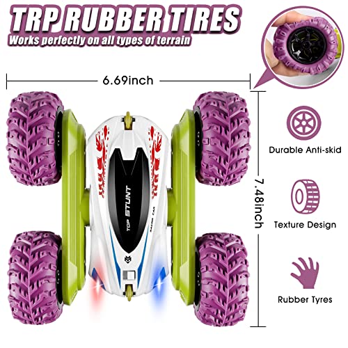【Multifunktionales Stunt Auto】Das ferngesteuerte Auto unterstützt zweiseitiges Fahren, vorwärts, rückwärts, Linkskurve, Rechtskurve, 362° Rollen und Flip und bietet Ihnen ein fantastisches Fahrerlebnis. Mit der Fernbedienung können Sie dieses elektrisch funkferngesteuerte auto in jede Richtung steuern, was Kindern endlosen Spaß bereitet.