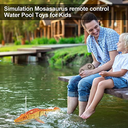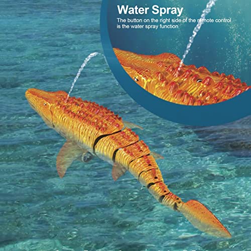 Langstrecken-Fernbedienung: Mit 2,4-GHz-Telemetrie und Ein-Knopf-Demonstration kann das schwimmende Mosasaurus-Spielzeug den Mosasaurus ganz einfach fernsteuern, um sich vorwärts und rückwärts zu bewegen, zu beschleunigen oder Wasser in den See oder Pool zu sprühen, was den Kindern Spaß macht.