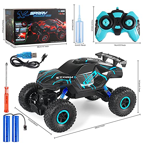 【Kühles Design】Dieses ferngesteuerte Auto verfügt über coole LED-Lichter und eine hintere Sprühvorrichtung. 5 LED Beleuchtungsmodi, beim Fernbedienung Einschalten beleuchtet werden, von Farbverlauf bis durchgehend. Das ferngesteuerte Auto hat eine Sprühfunktion, Fügen Sie Wasser oben auf das Auto,wird Wassernebel von der Rückseite des Autos gesprüht, Lassen Sie eine realere Erfahrung spüren.