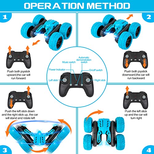 ????????【Voll Funktionsfähiges RC Stunt Auto】Doppelseitiges design, dieses ferngesteuertes auto kann auf beiden Seiten fahren und kippen, einfach durchzuführen aufrechte verwandeln 360° drehung mit coolen lichtern und musik(musik kann ausgeschaltet werden), doppelseitiges konstantes rollen und automatische demonstration, gibt Ihnen unterschiedliche ferngesteuertes Erlebnis!