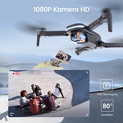 Tolle Aussicht von oben – 1080P HD-Kamera (Winkel 80°einstellbar) + reibungslose FPV-Live-Übertragung = Dein Horizont erweitert! Erfaß die Schönheit und Weite der Welt mit großer Leichtigkeit, JETZT!