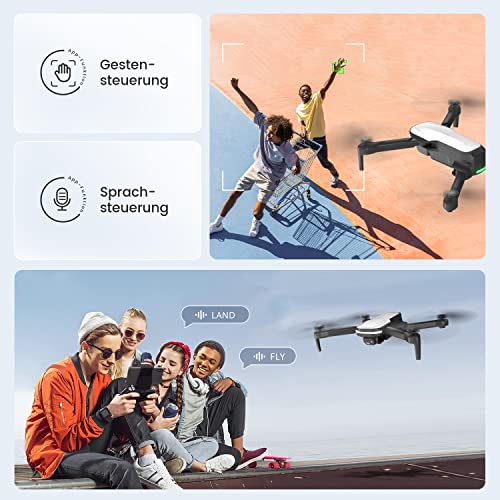Gesten- und Sprachsteuerung – Mit einfachen Sprachbefehlen wie “Fly” kannst du die Bewegung der Drohne steuern. Die Kamera der Drohne können auch mit einfachen Handgesten ausgelöst werden.