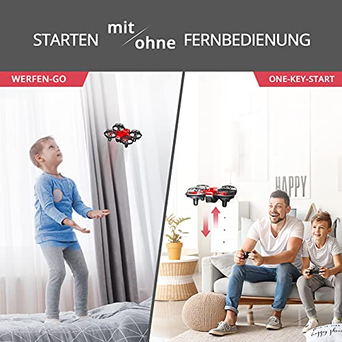 Einfachste Bedienung: Das Starten und Landen der mini Drohne per denselben Knopfdruck ist für den ungeübten Benutzer eine Erleichterung. Die Höhenhaltung, Kopfloser Modus und Not-Aus sind auch gut geeignet für Anfänger.