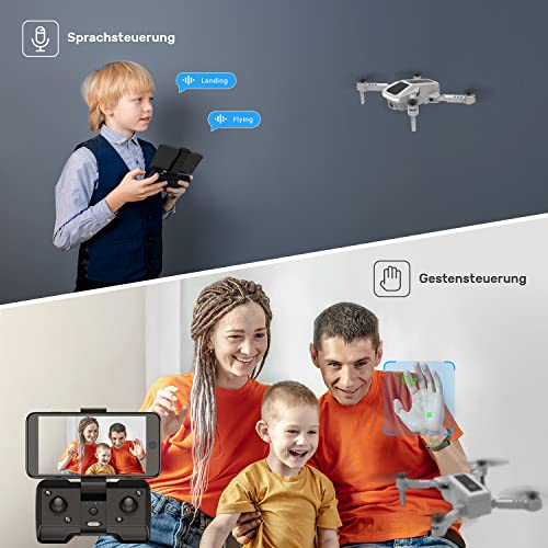 Smartphone-Steuerung: Geben Sie den mündlichen Befehl auf Englische (fly, land), wird die Drohne abheben / landen. Mit der Tap-Fly fliegt die Drohne entlang der benutzerdefinierten Punkte.Im Schwerkraftsensor-Modus flight die Drohne der Richtung Ihres Handys.