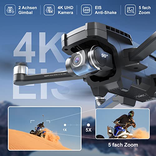 2-Achsen-Gimbal mit 4K-EIS-Kamera:Dank der 4K EIS-Kamera (Electronic Image Stabilization) und des 2-Achsen-Gimbal ist das Luftaufnahmen stabiler denn je. HS720G nimmt richtig tolle Videos und Bilder in 3840 x 2160 Pixeln auf.