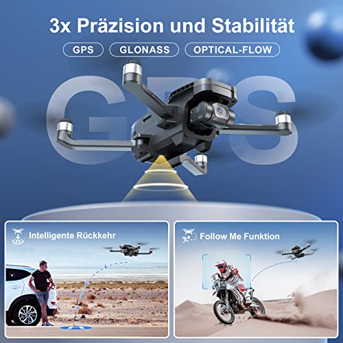 Leistungsstarkes GPS-Modul:Das GPS-Modul und Optical-Flow machen HS720G sicherer und zuverlässiger. Dank GPS fliegt sie auch bei Signalverlust oder niedrigem Batteriestand zu dir zurück. Mach dir keine Sorgen, dass sie wegfliegen wird.