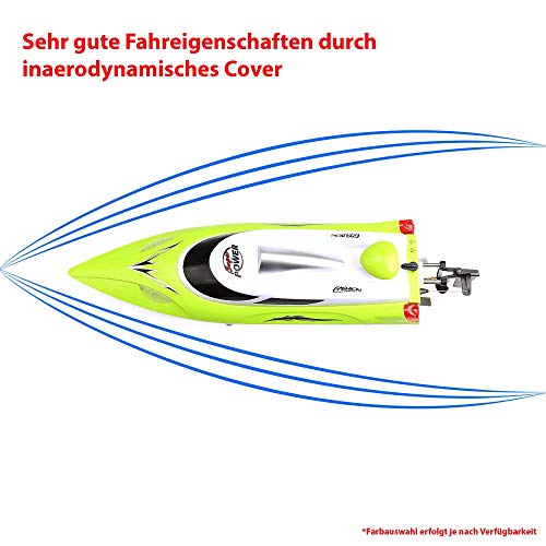 Komplett-Set inkl. Fernsteuerung, Akku und Ladekabel – ACHTUNG WICHTIGE INFO: Das Boot hat eine Sicherungsfunktion eingebaut. DER ARTIKEL FUNKTIONIERT NUR IM WASSER! Ein Trockenlauf ist aus Sicherheitsgründen NICHT möglich. Im Wasser wird die Sicherung im Niedrigvoltbereich überbrückt und der Elektromotor mit Strom versorgt. Die Sicherung ist eingebaut um Verletzungen vorzubeugen!