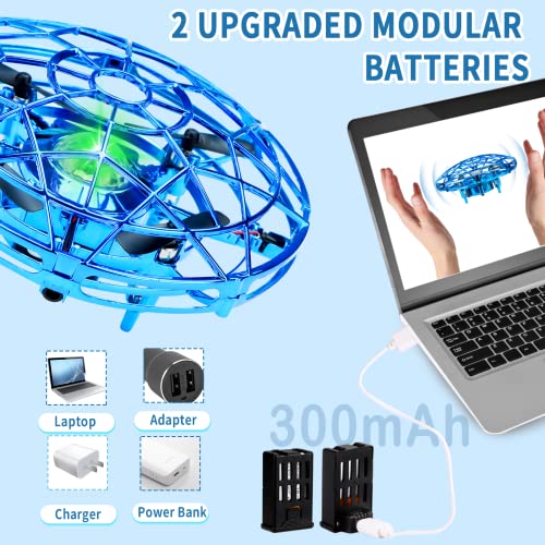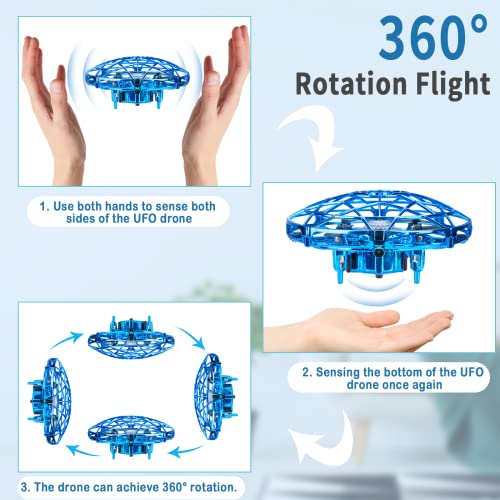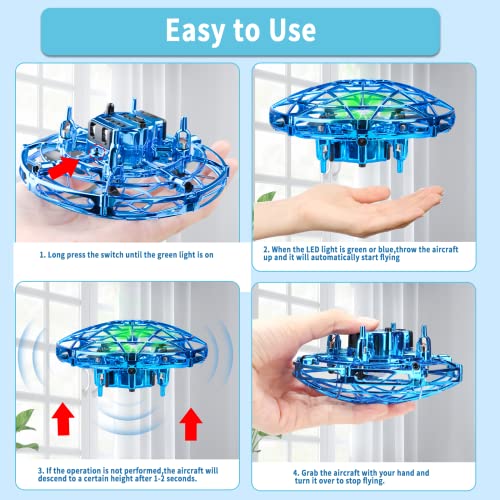 【Gestensteuerung und einfach zu bedienen】 Sie können Gesten verwenden, um die Richtung oder Höhe zu steuern, die Bedienung ist einfach und leicht zu steuern! Schalten Sie einfach den Strom ein, wenn das LED-Licht grün oder blau leuchtet, werfen Sie es in die Luft und es fliegt automatisch. Wenn Ihre Hand in der Nähe ist, fliegt die Drohne in die entgegengesetzte Richtung. Sie können es mit beiden Händen in der Luft steuern, um interaktive Spiele zu spielen und super Spaß zu haben!