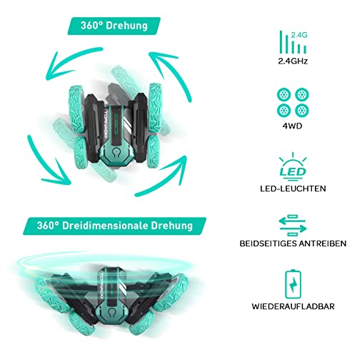 【360 ° Doppelseitiges Ferngesteuertes Flip Auto】Es kann nicht nur vorwärts, rückwärts, drehen und wenden, sondern auch auf beiden seiten fahren und beim auftreffen auf hindernisse automatisch überschlagen, ohne umzukippen. Hervorragende leistung kann allen arten von unebenheiten wie Gras, Schnee, Felsen, Sand, 45 ° Steigung usw. standhalten und darauf laufen.