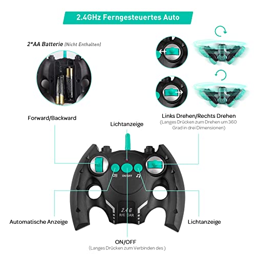 【Anti-Jamming-Steuerung】 Die drahtlose fernbedienung und das spielzeugauto verwenden eine 2,4-GHz-Anti-Jamming-Verbindung.Die reichweite der fernbedienung von 40 Metern stört sich nicht, wenn mehrere autos zusammen spielen, und genießen Sie den spaß am spielen.