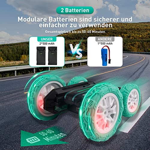 【Wiederaufladbarer USB-Akku】Ferngesteuertes Auto das modulare akkudesign verwendet einen 500mAh-Lithium-Akku mit großer kapazität für eine lange akkulaufzeit und endlosen spielspaß. Außerdem wird eine ersatzbatterie mitgeliefert. Eine batterie reicht für 30 Minuten, zwei batterien für 60 Minuten.Fernbedienung benötigt zwei AA-Batterien (nicht im Lieferumfang enthalten)!!!
