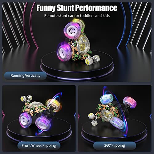 【Die ferngesteuerten Autos mit Stunts】 Dieses ferngesteuerte Auto kann mit seinen schillernden LED-Scheinwerfern fahren, doppelseitig fahren, 360 ° drehen und drehen. Außerdem lässt sich das Hinterrad für eine Verwandlung strecken. Tolles Kinderspielzeug, mit dem kleine Jungen und Mädchen eine wunderbare Autoshow und Spaß genießen können.