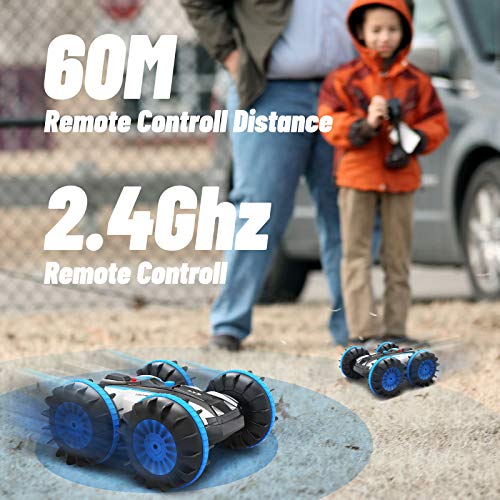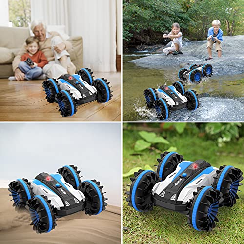 RC Amphibienfahrzeug: Fährt auf Land und Wasser RC Auto , beherrscht beide Elemente und ist dafür mit einem stabilen, wasserfesten Chassis und schaufelartigen Rädern ausgestattet. kann auf jeglichem Untergrund wie Boden, Wiese, Wüste und Gestein fahren, Wasseroberfläche. (Bitte denken Sie daran, nach jedem Spiel eine Drainage zu machen oder das Gras und den Sand zwischen den Rädern zu entfernen)