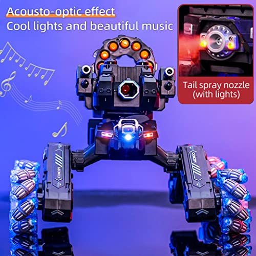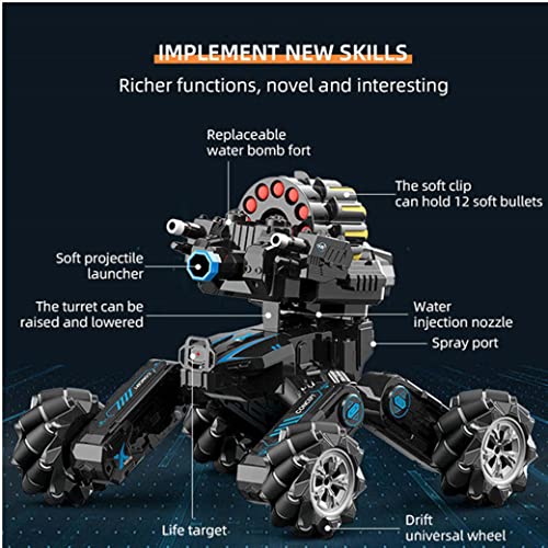 ????【Langlebiger wiederaufladbarer RC-Tankwagen】Dual-Modus: Handgestensensor und Fernbedienung; Allrad-RC-Drift, Stunt, Kampfauto; Austauschbarer 2-Turm aus weichen Schaumstoffpfeilen oder Wasserkugelbombe, Wasserspray mit Licht, LED-Blitz, 360 ° drehbar mit Musik, One-Key-Demonstration, Renn- und Klettermodus, modulares DIY-Spielzeug.