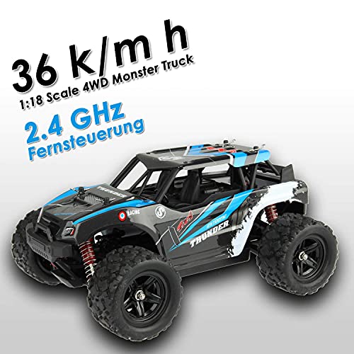 Maximum RC Monster Truck – 4WD Thunder Car 36km/h ferngesteuertes Auto – Ersatzteile (1x Monster Truck / Thunder Car blau)