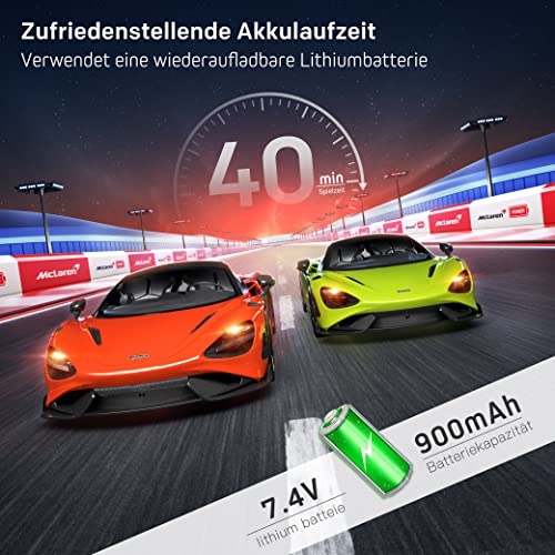 Einfach zu bedienen: Das ferngesteuerte Auto verfügt über eine 2,4-GHz-Frequenz mit einer Fernbedienungsentfernung von bis zu 50 m. Der Controller ist mit einem abnehmbaren Lenkring ausgestattet, der beidseitig installiert werden kann, so dass High-Performance RC Car: Unser McLaren Spielzeugauto hat eine Skala 1:12 und eine leichte, aber robuste Karosserie aus hochwertigen Materialien und langlebiger Sprühlackierung. Diese aerodynamische Karosserie und die ästhetischen Linien machen das Auto sowohl eleganter als auch schneller und erreichen eine Höchstgeschwindigkeit von 12 km / h.- und Linkshänder ein hervorragendes und komfortables Rennerlebnis genießen können.