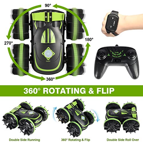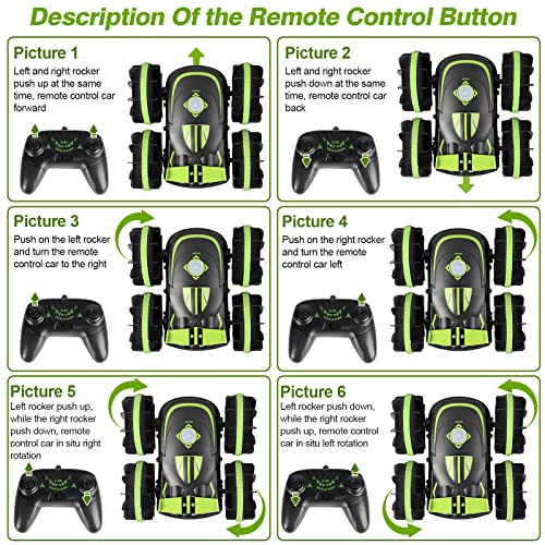 【4WD High Speed & 360° Rotating】 Das ferngesteuerte 4WD-Fahrzeug macht es flexibel, um erstaunliche 180-Grad-Kippbewegungen und 360-Grad-Drehungen durchzuführen. Das Design des ferngesteuerten Autos unterstützt es dabei, Land, Sandstrand, Schlamm, Gras oder Meer zu durchbrechen leicht! Vorwärts, rückwärts, links abbiegen, rechts abbiegen. Überwindet schnell alle Hindernisse. Cooles Autospielzeug für Kinder und Erwachsene!