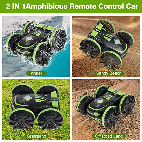 【Weihnachtsgeschenk für Kinder】 ABS-Kunststoff für die Luftfahrt macht den Körper des Amphibious Off Road Trunk haltbarer und wasserdichter. Mit dem hochfesten Gummi ist es nicht leicht zu brechen oder abzufallen. Hochwertiges Autoboot macht den Spaß länger. RC-Fernbedienung Rontrol Autoboot ist das beste Geschenk für Kinder ab 6 Jahren, Teenager, Erwachsene.