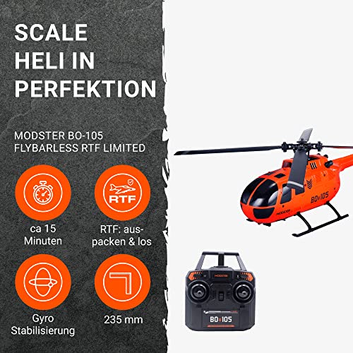 WIE DAS ORIGINAL: Die detailgetreue BO-105 in der Sonderedition kann kaum vom Original unterschieden werden. Unser MODSTER Helikopter begeistert und überzeugt jeden Scale Fan und Modellpiloten in wenigen Sekunden