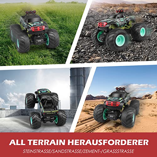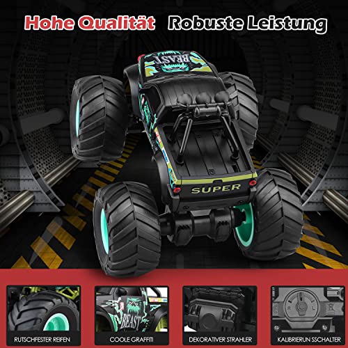 【Hochleistungs RC Auto Spielzeuggeschenke】Jedes Detail zeigt unserem Produkt mehr Spaß. Mit diesem ferngesteuerten Truck werden Sie zum Blickfang der Menschen. Wo immer Sie spielen können. Legen Sie Ihre Arbeit auf Eis, gehen Sie mit Ihren Kindern aus und genießen Sie die Zeit mit der Familie. Das perfekte RC CAR ist ein unverzichtbares Geschenk für den Geburtstag oder jedes Festival.