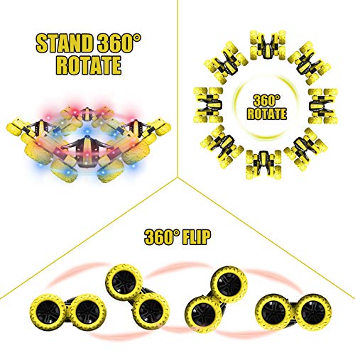 【Doppelseitiges RC-Stuntauto 360° Drehung und Umdrehung】doppelseitige Fahrt, vorwärts, rückwärts, 360° Umdrehung, 360° Drehung, ausgefallene Drehbewegung (bitte sehen Sie sich die Videodemonstration an). Geben Sie Ihrem Kind eine andere Erfahrung und bringen Sie so einzigartigen und unendlichen Spaß.