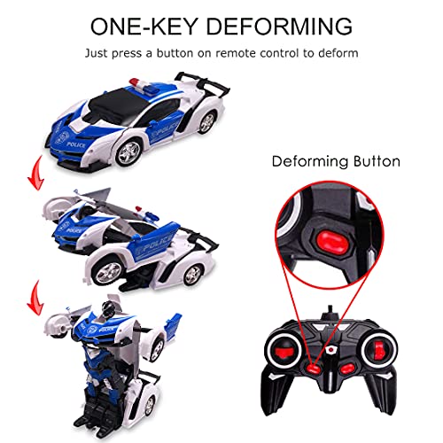 [2 in 1 Design] – Das größte Merkmal des ferngesteuerten Autos ist sein einzigartiges 2 in 1 Design: Auto und Roboter sind in einem integriert. Tippen Sie einfach auf eine Taste auf der Fernbedienung und sie verwandelt sich automatisch vom Auto zum Roboter. Das Design dieses ferngesteuerten Autos ist von Transformers inspiriert